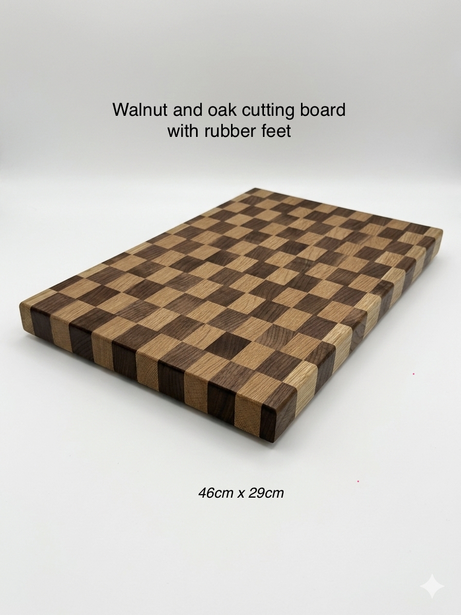 Checkerboard pattern - Walnut and Oak cutting board with rubber feet