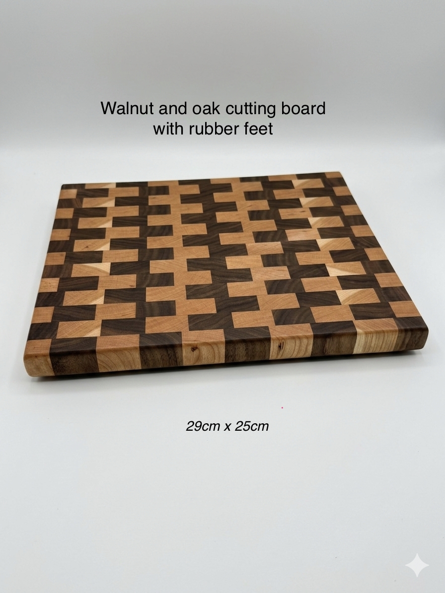 Checkerboard pattern - Walnut and Oak cutting board with rubber feet