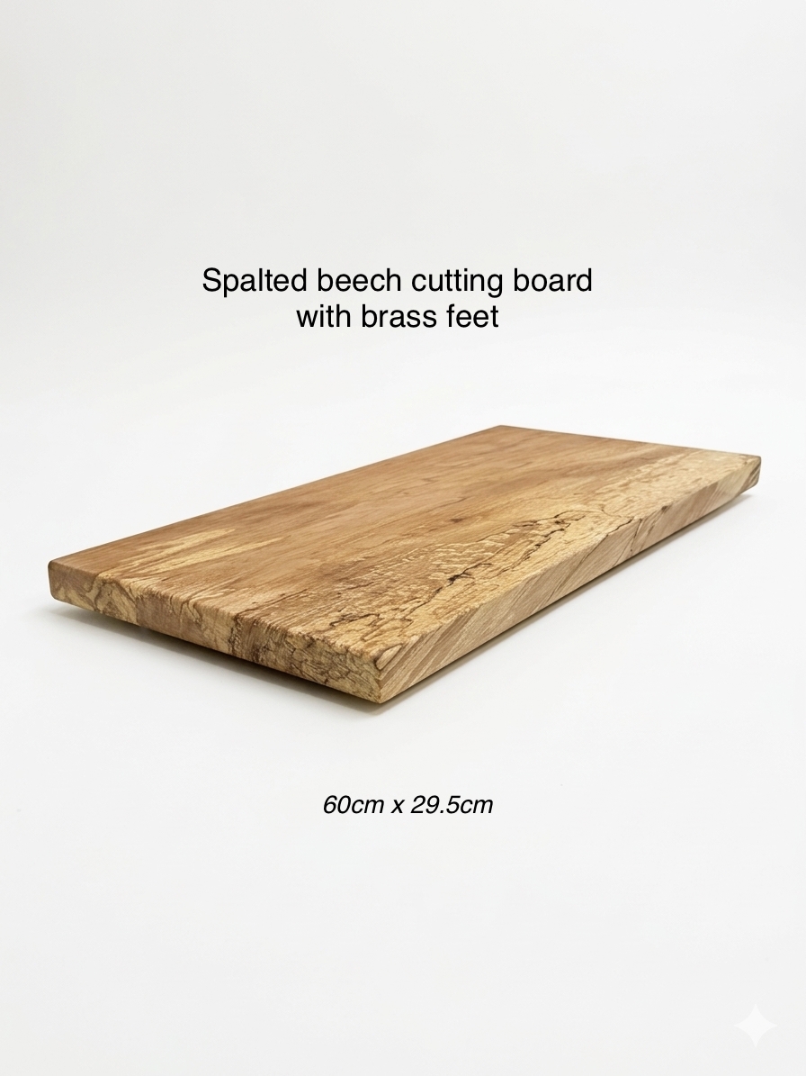 Spalted beech cutting board with brass feet